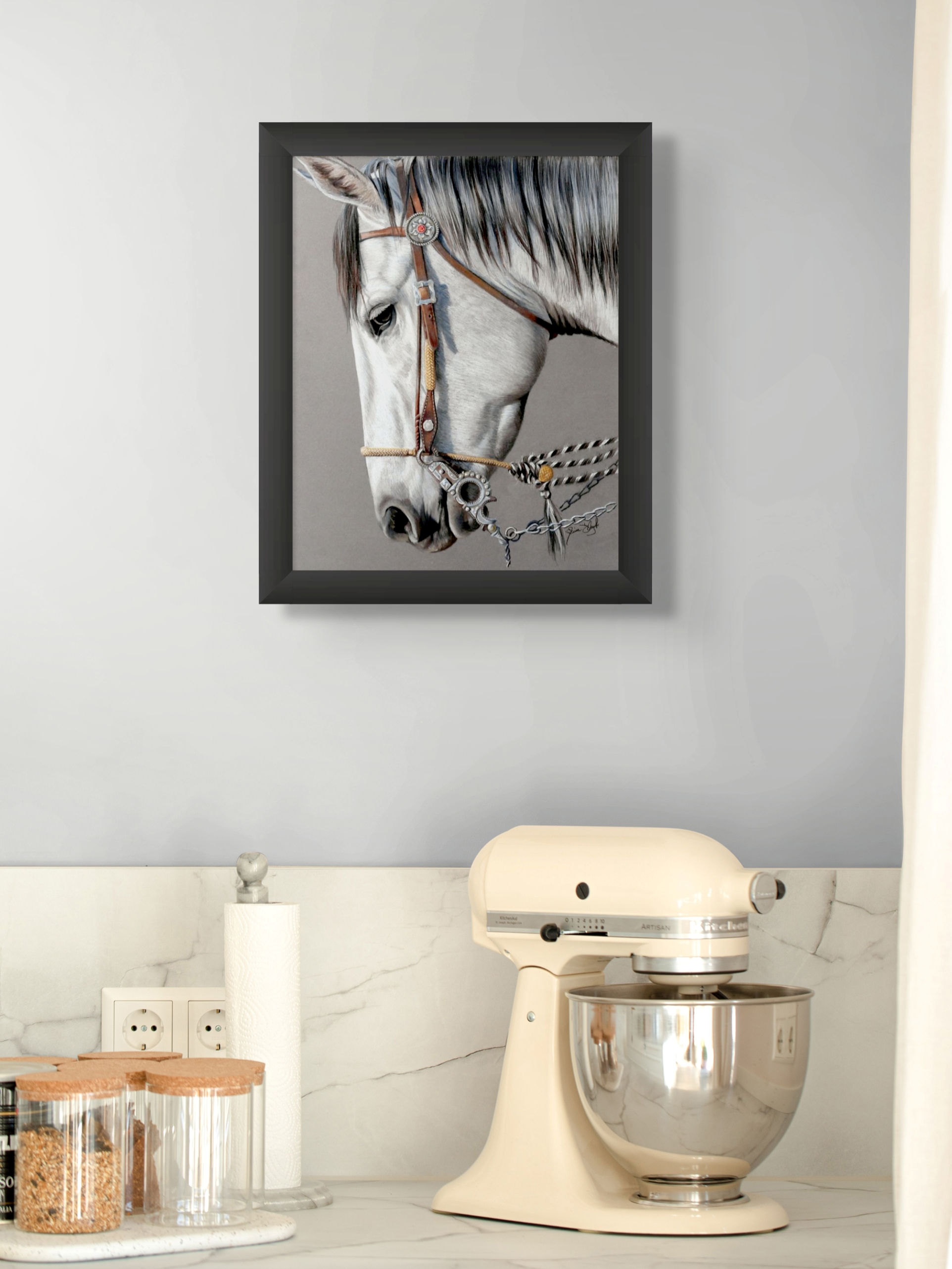 That Look There’s something about that look—the mix of strength, trust, and spirit that only a horse can hold. I drew this because that gaze stays with you; it’s alive, curious, and full of heart. I spent hours capturing that emotion, that spark of connection. Collectors tell me pieces like this bring warmth and soul into their homes—a reminder of beauty that never fades. (Shown in 24 x 18 framed paper print) |