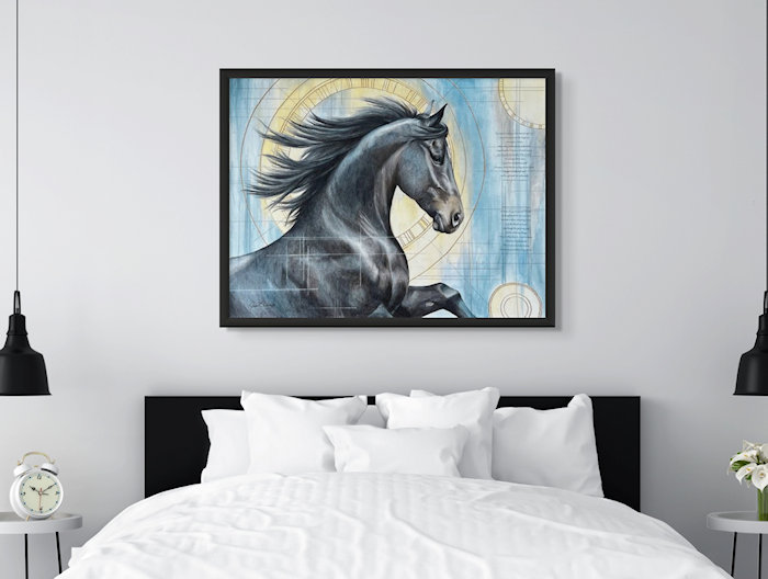 Beneath the canopy of the eternal night sky, where the stars shone like fragments of forgotten dreams, there was a stallion known as Antares. Legend spoke of him as a celestial creature, born from the first breath of the universe, his midnight-black coat woven from the darkness itself. His mane flowed like the swirling nebulae above, caught in an ethereal wind, as if he galloped not on the earth, but through the very heavens.