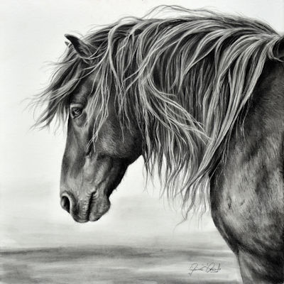 Eye Catcher Draped in leather and fringe, his presence carries the timeless spirit of the West. With a gaze both calm and commanding, this portrait captures the kind of horse that stops you in your tracks, a striking addition for any collector of western art. |